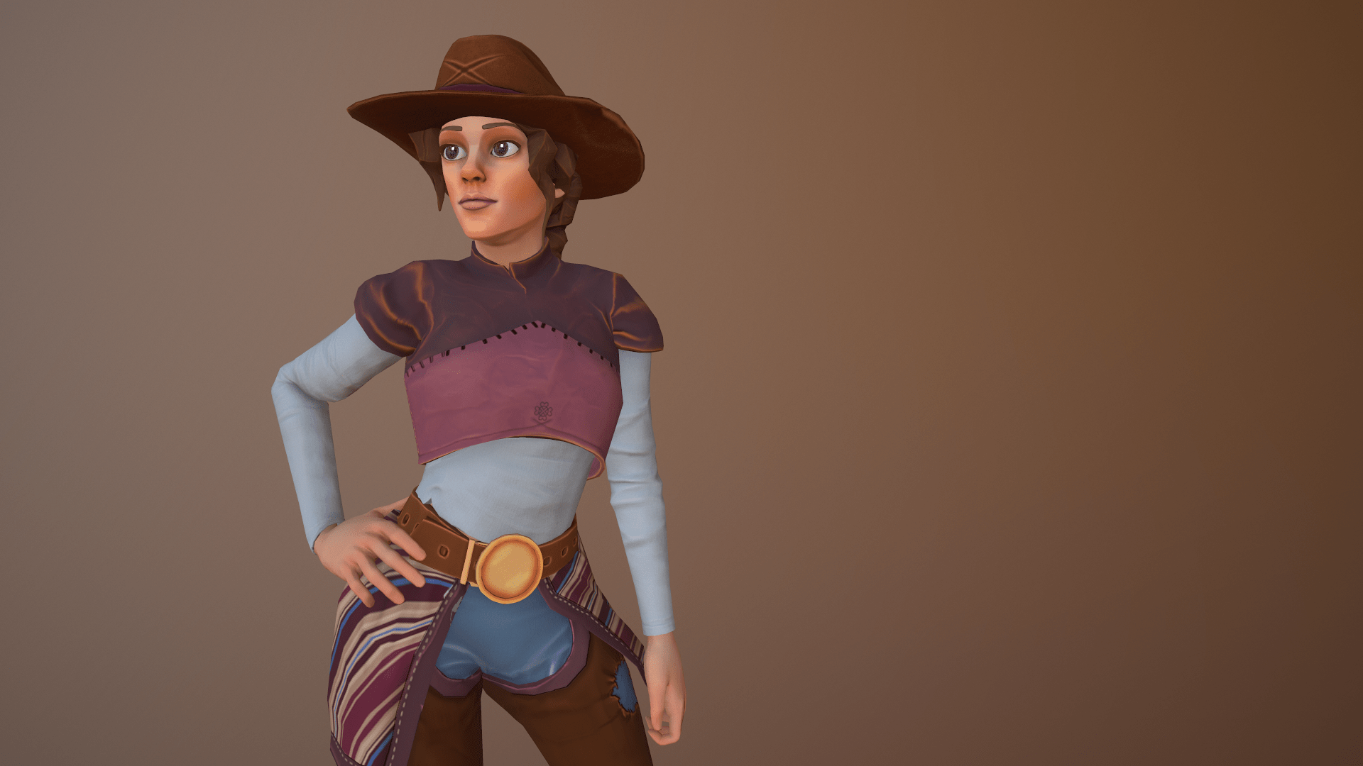 Since starting this open world RPG project, I’ve been inspired from a couple different sources. For one, Westworld is one of the best written television shows ever, and seeing their costume design really inspired me–especially when it came to color balancing! However, Wild West and Wizards needed a more silly approach to fit the intended mood of the game, so I made sure to re-watch Blazing Saddles to get another take on the popular wild west genre. I noticed that most of the color palettes that I came across were very muted, so I made sure to stick with three core colors that worked together with one accent to draw the eye around the character.
